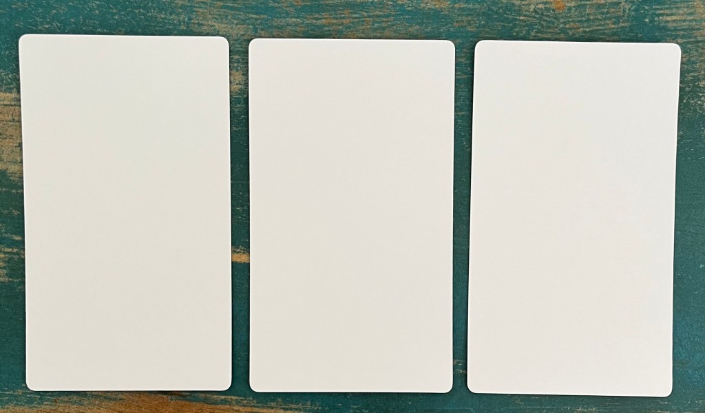 - You pull three cards (lay left to right), and each one stands for something like the past, present, and future, or gives you different angles like what’s happening, the challenges you’re facing, and some advice.