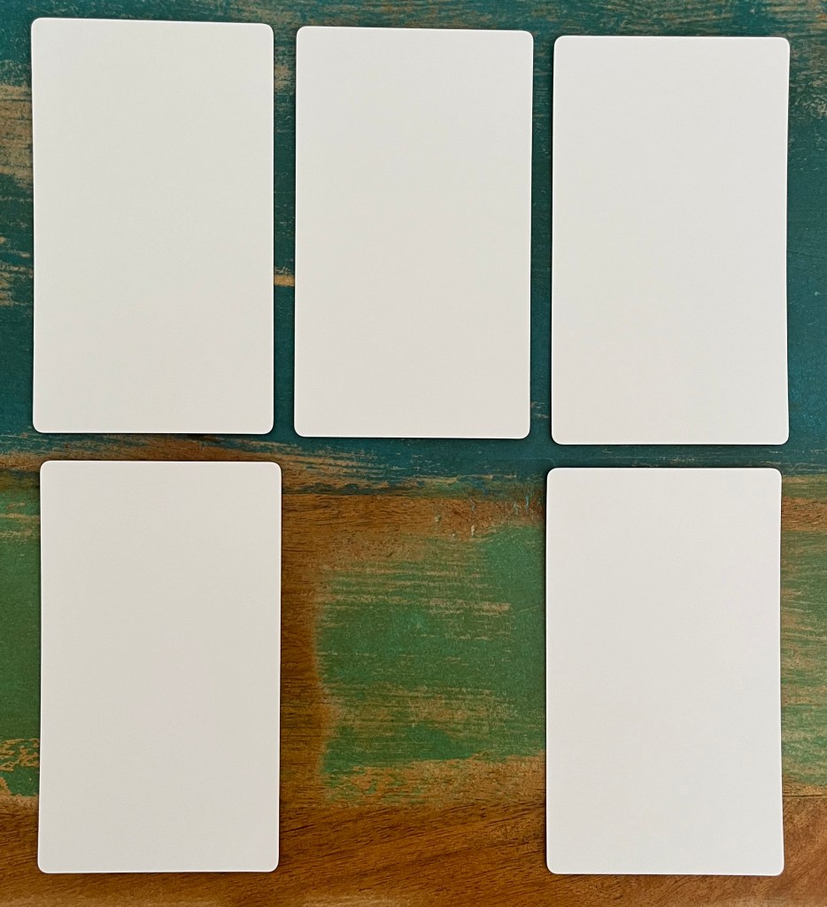 The five card layout is an upside down U shape but can vary depending on the theme and question.