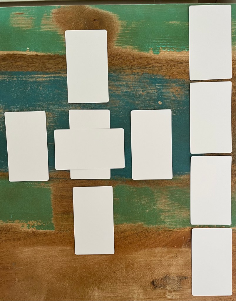 - The first card is the current situation, issue (lay in middle)